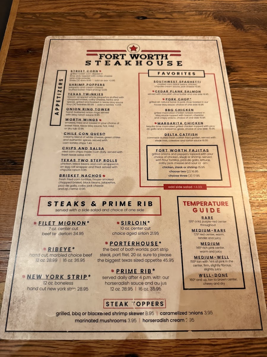 From the rustic setting to friendly service, Fort Worth Steakhouse offers not just a meal, but an experience that feels like home.